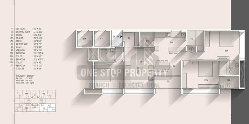 Flat Size : 2295 - 5130 Sq.Ft.Super Builtup