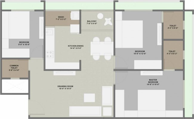 Flat Size : 780 - 826 Sq.Ft. Super Builtup