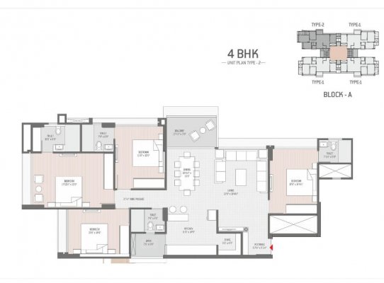 Flat Size : 2115 - 2835 Sq.Ft. Super Builtup