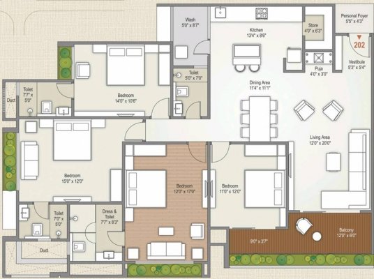 Flat Size : 3033 - 3267 Sq.Ft. Super Builtup